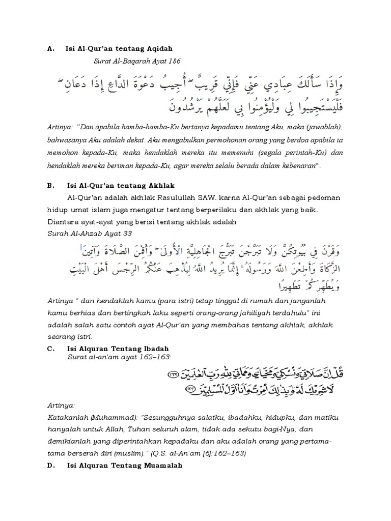 Artikel ayat al quran tentang akhlak dan penjelasannya ini menyajikan sebagian kecil dari banyaknya ayat ayat al quran yang berbicara tentang akhlak dengan penjelasan singkat dari salafush shalih orang orang shalih terdahulu. Pengertian akhlak macam macam akhlak dan dalil tentang akhlak adalah bagian dari ceramah agama dan kajian islam dengan pembahasan k itab الدروس المهمة لعامة الأمة pelajaran pelajaran penting untuk segenap umat pembahasan ini disampaikan oleh syaikh prof. Ayat al qu ran yang merupakan pujian untuk nabi muhammad s a w adalah ayat berbunyi wa innaka la ala khuluqin azhim yang artinya sesungguhnya engkau wahai nabi muhammad s a w memiliki akhlak yang sangat agung. Ayat ayat al quran tentang akhlak terpuji dan akhlak tercela dalam bacaan arab arti serta penjelasan tafsir diantaranya tentang akhlak kepada allah dan akhlak kepada manusia juga 10 ayat tentang akhlak tercela dari surat al baqarah.