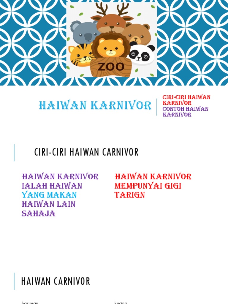 Sally wong 14 december 2012 at 09 07. Posted by unknown at 07 08. Manakala gigi gerahamnya juga tajam bergerigi dan berbentuk pisau. Merupakan haiwan yang makan daging dan tumbuhan.