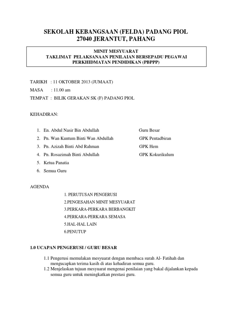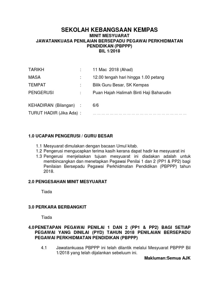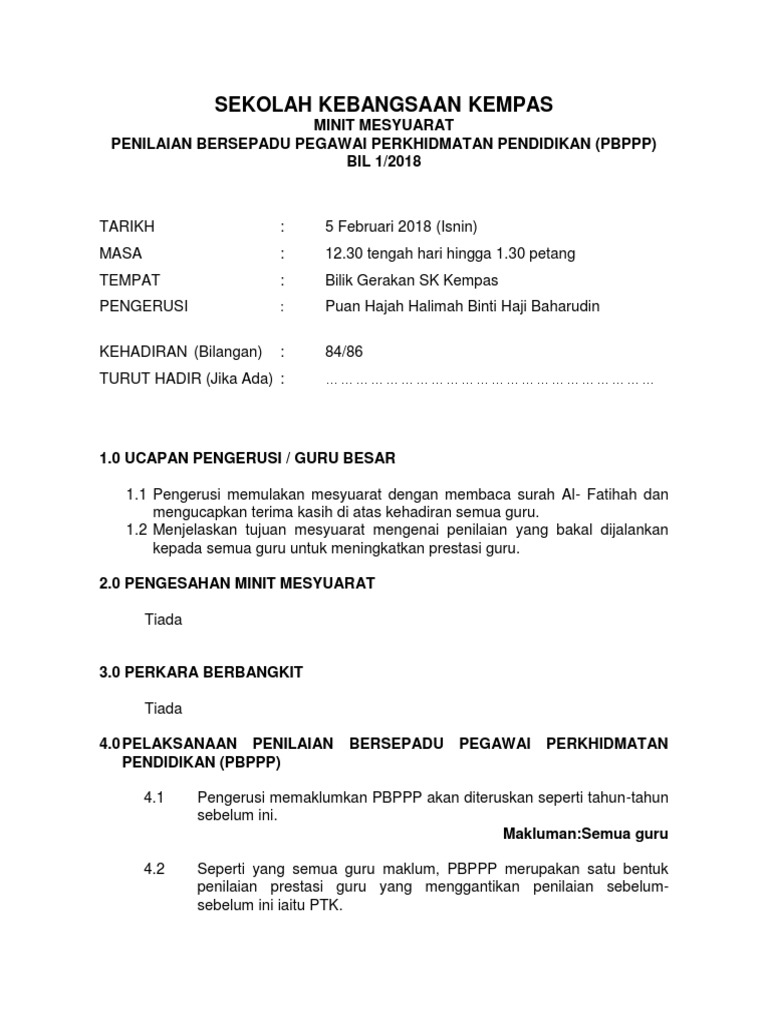 Contoh Minit Mesyuarat Pbppp Kali Kedua