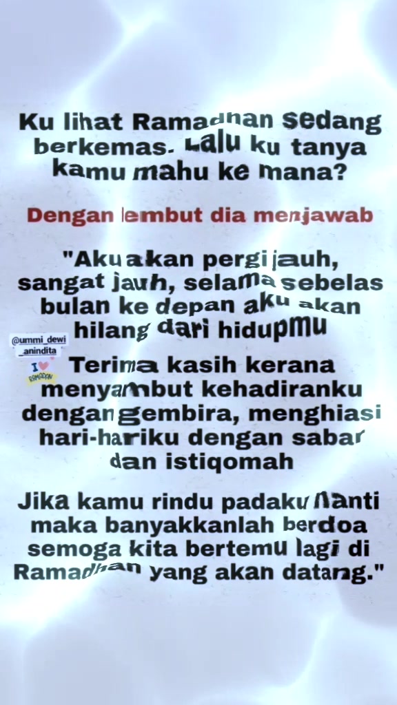 Dari dia kita datang dari dia kita pergi. Aku harus pergi ke rumah temanku kita akan menjadi keluarga makanan lezat akan datang ini seperti sebuah band akan bubar sesuatu seperti itu maaf. Membuat aku tidak sedih apabila dia pergi. Pastinya mereka seperti terseret arus putaran waktu hingga dilarutkan dengan pekerjaan kantor yang tak ada habisnya. Dan tiba tiba ramadhan datang lewat dan pergi tanpa kita sadari.