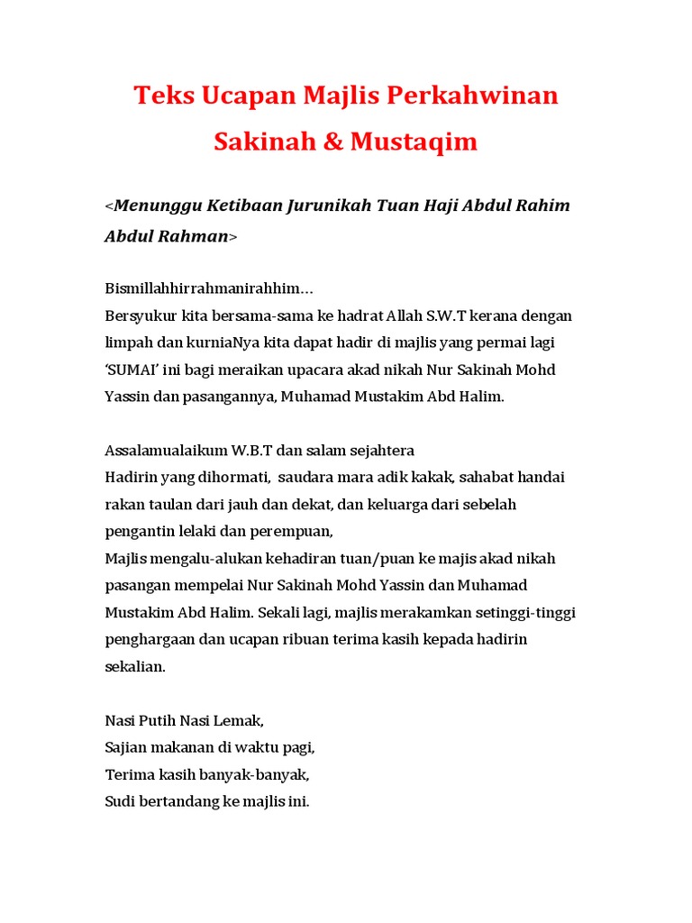 Kahwin Teks Ucapan Wakil Keluarga Pengantin