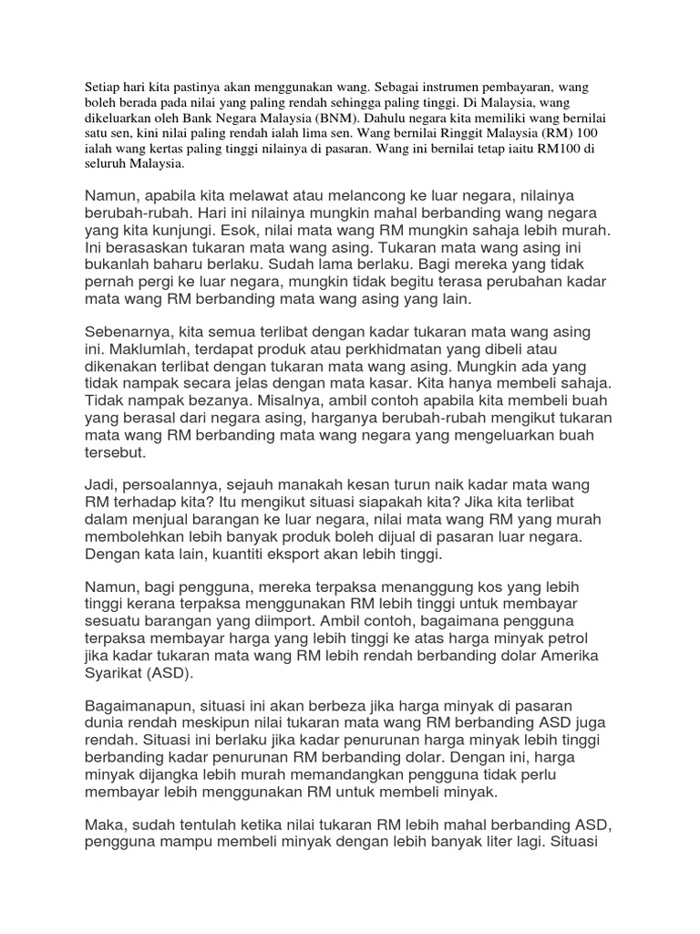 Di akhir ucapannya beliau meminta agar para penerima mendoakan kebaikan kepada penderma penderma yang sudi menderma bagi mtd menjayakan program yang baik ini kerana semua bantuan itu adalah dari orang ramai. Mata wang dolar as digunakan sebagai pengukur matawang negara lain ataupun mengukur harga komoditi seperti harga emas dan harga minyak. Apakah kesan kejatuhan nilai wang ringgit malaysia kebaikkan dan keburukkan penurunan nilai matawang ringgit dan persediaan menghadapi krisis ekonomi. Hakikatnya ketidakadilan dan penindasan oleh negara negara kuasa besar ekonomi dunia terhadap negara negara lain seperti malaysia dalam menentukan nilai mata wang disebabkan sifat mata wang itu sendiri.