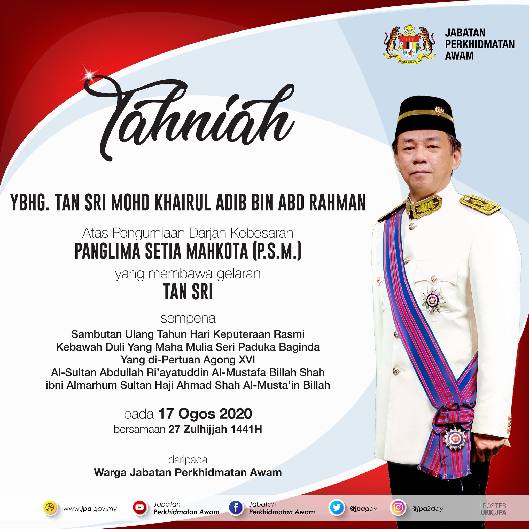 Ketua pengarah perkhidmatan awam. Tan sri mohd khairul adib bin abd rahman. Datuk mohd khairul adib abd rahman ketua pengarah perkhidmatan awam 13 ogos 2020 jabatan perkhidmatan awam tarikh. Noor ain binti arbain.