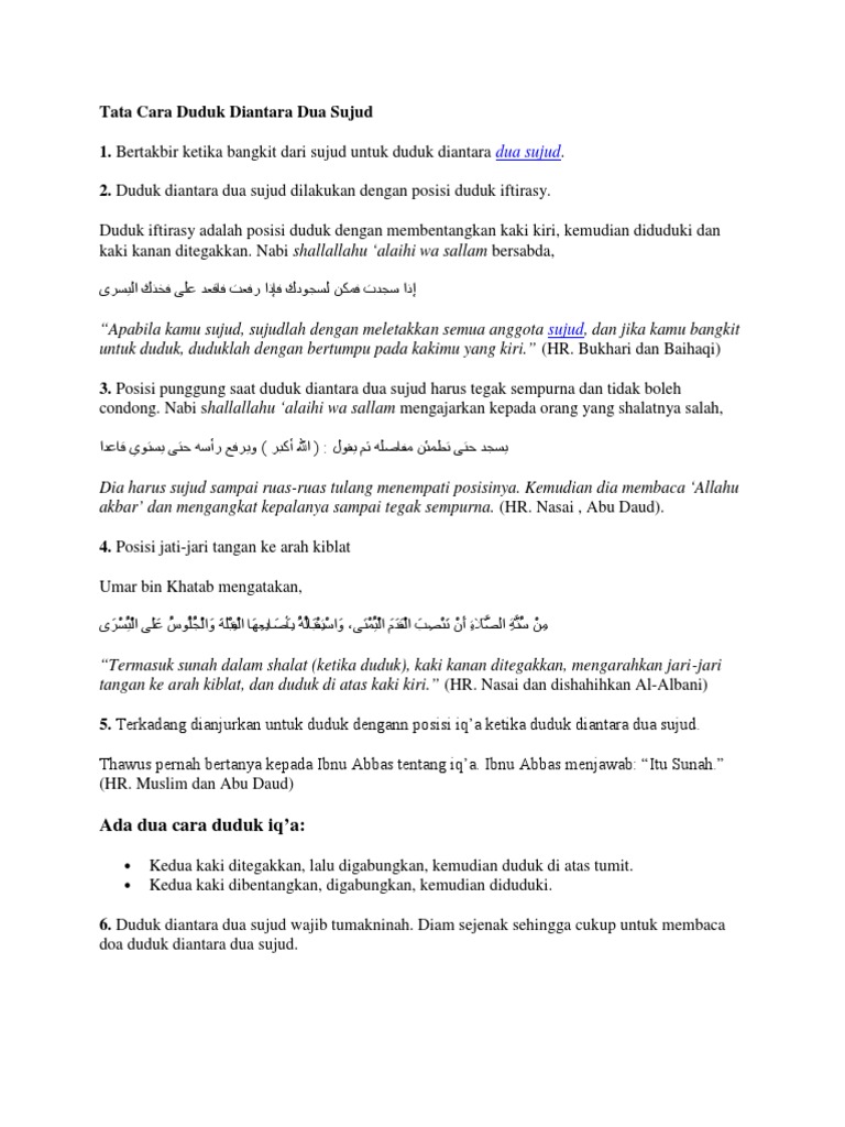 Bacaan doa ketika duduk di antara dua sujud dalam shalat duduk iftirasy. Sehingga sholat yang kita kerjakan dapat diterima allah subhanahu wa ta ala. Doa duduk diantara 2 sujud rabbigfirli latin dan terjemahannya yang benar sesuai sunnah simak ulasannya dibawah ini. Kita bisa memilihnya salah satu.