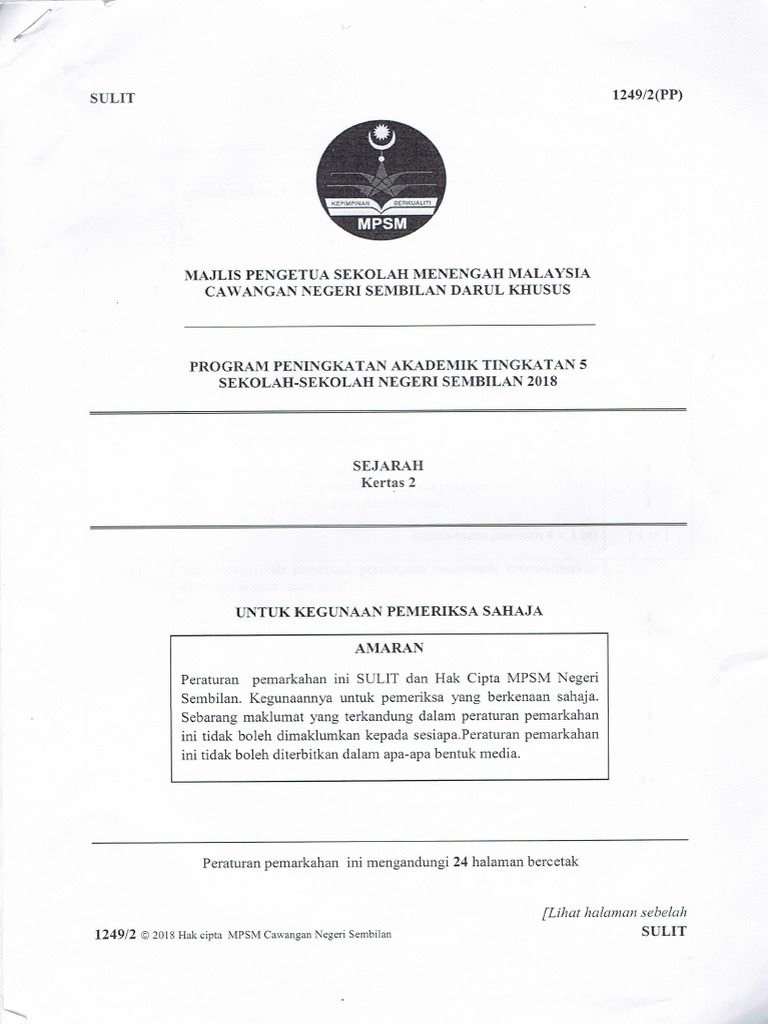 Majlis pengetua sekolah malaysia negeri sembilan 2018. Majlis pengetua sekolah malaysia negeri sembilan program peningkatan akademik tingkatan 5 sekolah sekolah negeri sembilan 2019 untuk kegunaan pemeriksa sahaja bahasa melayu kertas 2 peraturan pemarkahan amaran sulit dan hak cipta mpsm negeri sembilan. 2 sulit 1511 pp 1511 pp 2019 hak cipta mpsm. 2018 berkualiti 1103 1 1. Kertas soalan ini mengandungi dua bahagian.