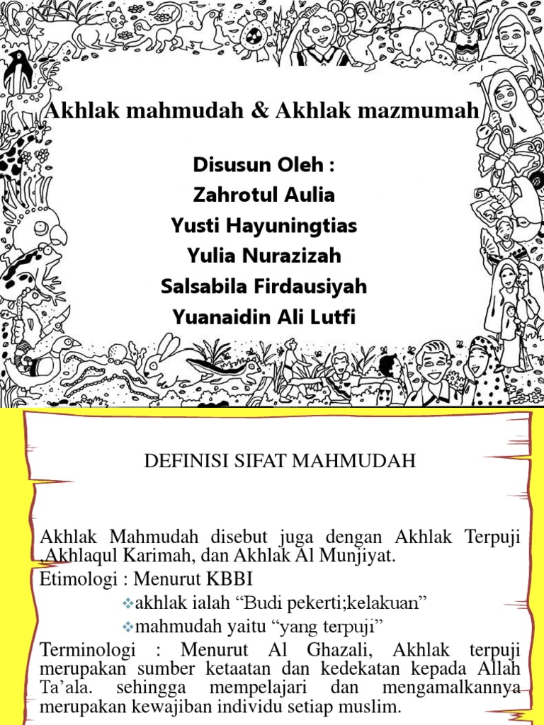 Maksud sifat mahmudah dan mazmumah. Menggantikan sifat mazmumah dalam diri kita dengan sifat mahmudah. Akhlak islam ialah sepertimana akhlak nabi muhammad saw yang mempunyai akhlak yang mahmudah terpuji. Imam al ghazali juga menggariskan sepuluh sifat mazmumah tercela di dalam kitab tersebut iaitu. Sifat mazmumah dan mahmudah adalah berlawanan kalau banyak sifat mazmumah maka sedikitlah sifat mahmudah yang dapat subur.