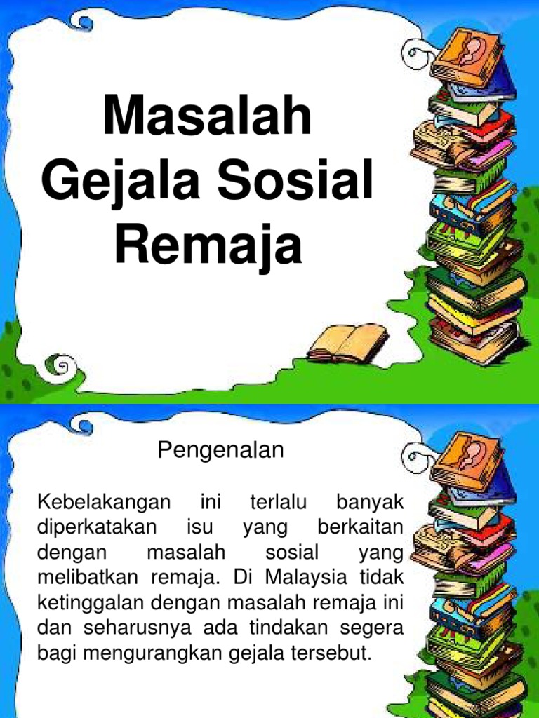 Cadangan untuk mengawal masalah dan salah laku sosial remaja yang berlaku dalam masyarakat bandar di semenanjung malaysia. Saya dapati apa yang diperkatakan ada asasnya. Masalah social remaja pengenalan permasalahan sosial dan gejala yang menyalahi dan melanggari norma norma kesucian yang dipelihara. Masalah sosial merupakan gejala gejala sosial yang dilakukan oleh individu terutamanya remaja.