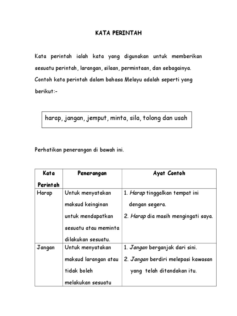 Kata perintah ialah ayat yang diucapkan dengan tujuan menimbulkan gerak balas yang berupa tindakan. See more ideas about bahasa melayu tatabahasa prasekolah. Ayat perintah terbahagi kepada. Nota yang ringkas senang difahami.