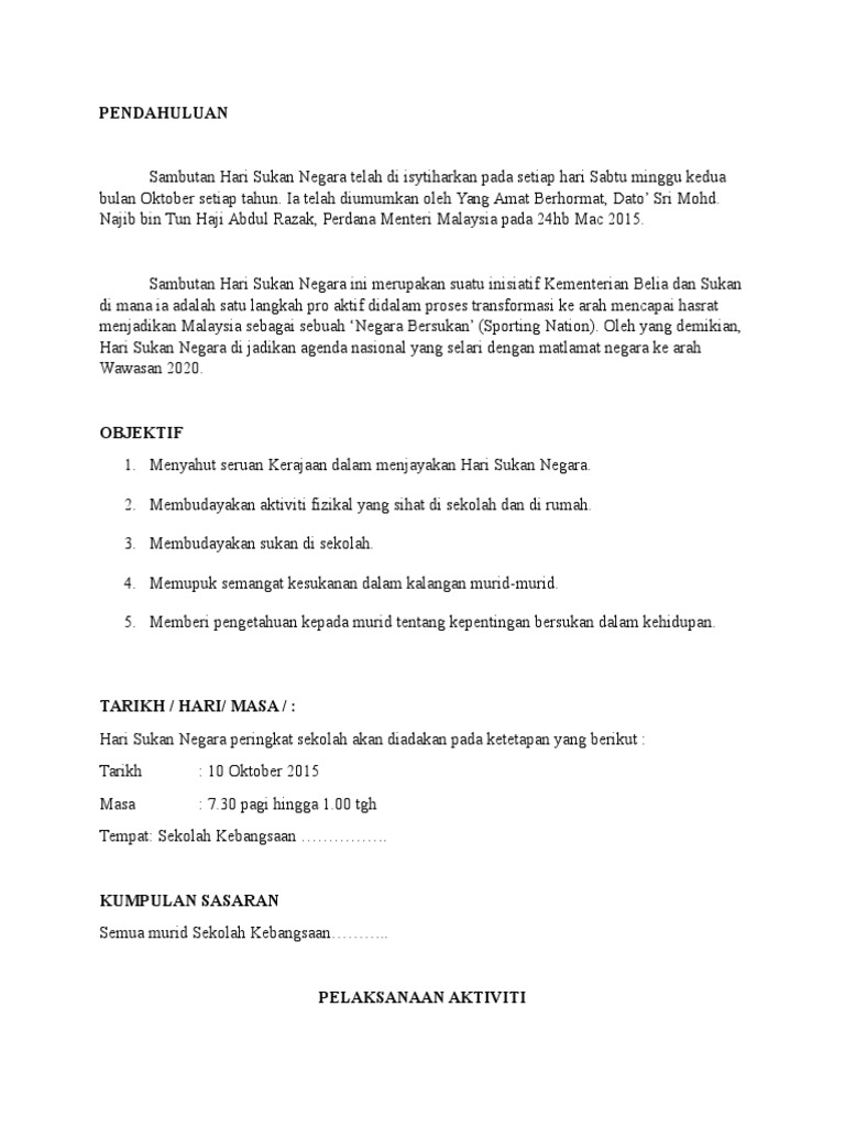 Cadangan senarai nama pegawai sukan. Isnin dan selasa 3. 1 0 nama program program merentas desa sempena hari sukan negara peringkat sekolah 2017. Selain itu ia mampu menonjolkan dan mengembangkan bakat dalam diri pelajar.