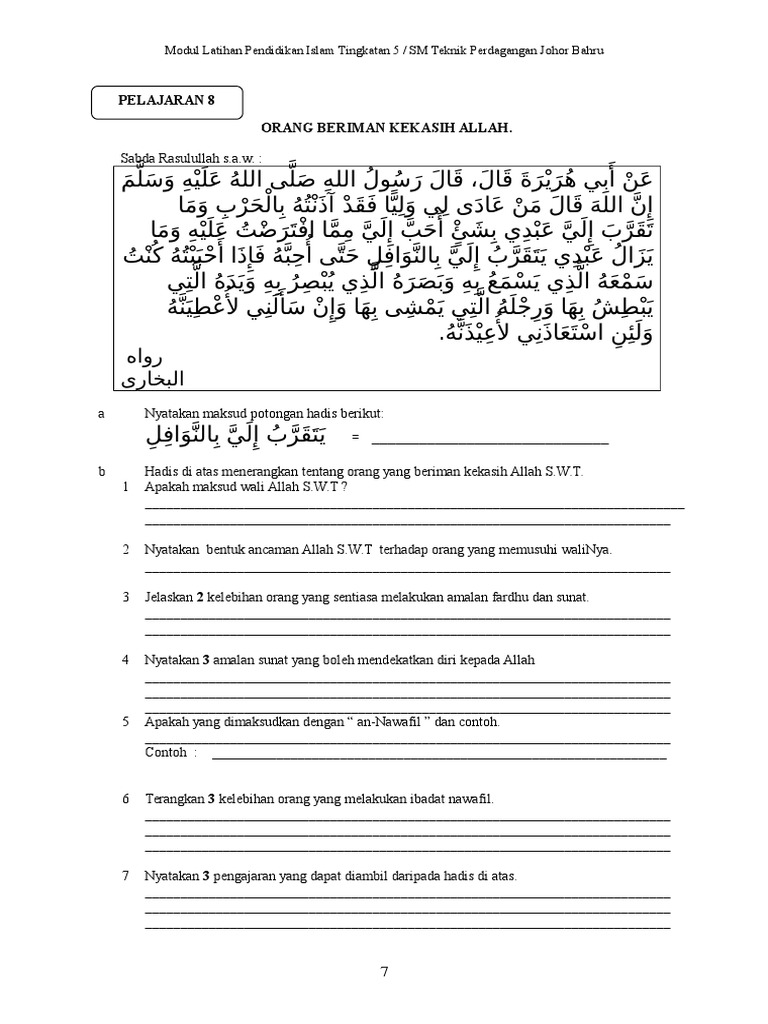 Senaraikan 3 contoh ibadah nawafil yang perlu anda amalkan untuk menjadi pelajar yang diredhai allah swt 3m spm 2007. 13 seorang rasul adalah manusia pilihan allah swt yang artinya rasul itu berasal dari golongan manusia yang memiliki sifat sifat seperti manusia pada umumnya. 10th 12th grade. Wahai orang orang yang beriman.