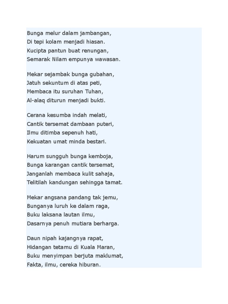 Salam penulis tinta pantun bahasa jiwa bangsa saudara saya mohon letak di blog pusat sumber sekolah saya sudilah kiranya tidak keberatan beri keizinan. Dua baris awal sebagai pembayang sementara dua baris yang terakhir terkandung maksud sebenarnya yang hendak disampaikan. Bahan bantu mengajar 1 jenis pantun 4 kaedah mengajar pantun 1 koleksi pantun 7 pantun 7 pantun pengenalan 3 umum 2 blog archive. Yakinlah bahasa jiwa bangsa.