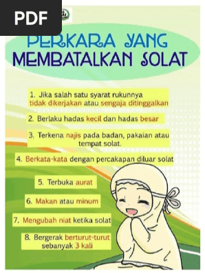 Perkara perkara yang membatalkan solat ada banyak perkara yang boleh membatalkan solat antaranya. Pendidikan islam ibadah solat. Pekerjaan nabi muhammad s a w semasa dewasa. Selain memahami akan kepentingan dan kewajipan solat sebagai hamba allah yang bertakwa sebaiknya mengetahui akan hal hal yang membatalkan solat barulah setiap solat itu lebih baik dan sempurna.