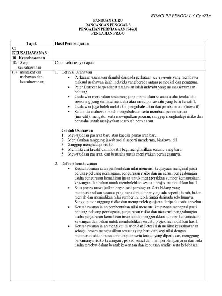 Contoh kerja kursus pengajian perniagaan tingkatan 6 penggal 3 2015 stpm kfc malaysia s946 stpm pengajian perniagaan syllabus 946 sukatan pelajaran pengajian perniagaan. Kali ini saya upload nota untuk penggal 3. Pengurusan 6 years ago cikgu liza pp. Saya yakin saya boleh 10 0 keusahawanan 10 1 skop keusahawanan a mentakrifkan usahawan dan keusahawanan takrif usahawan manusia yang mengenalpasti dan merebut peluang berani mengambil risiko seterusnyamengambil inisiatif bagi memulakan perniagaan atauusaha teroka baharu dengan mengurus sumber sumber factor pengeluaran dan menambah nilai kepada sumber sumber.