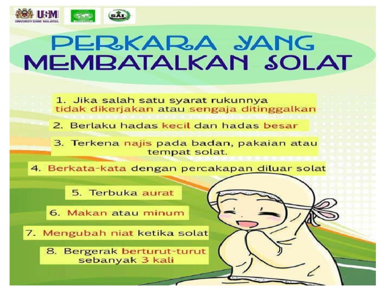 Perkara yang membatalkan solat. Anda wajib tahu kerana. Simak ulasan tentang perbuatan yang membatalkan sholat atau hal hal yang dapat membatalkan sholat pada artikel berikut. Jika anda tertinggal salah satu rukun solat maka solat anda tidak sah. Meskipun hanya sedikiit tetap membatalkan kecuali tidak tahu misalnya saja seorang mualaf yang baru masuk islam.