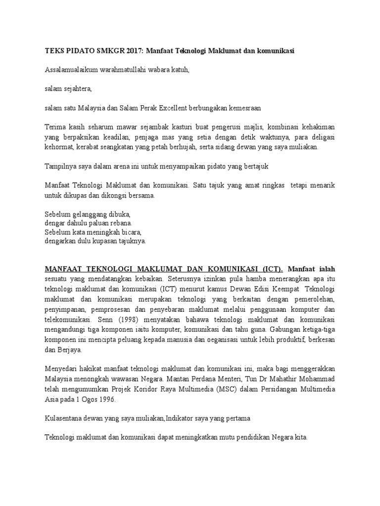 Assalamualaikum wa rahmatullahi wa barakatuh salam sejahtera dan salam 1malaysia. Tajuk pidato saya bahasa melayu citra bangsa malaysia. Terima kasih saya ucapkan kepada yang dihormati saudara pengerusi majlis para hakim yang arif lagi bijaksana tetamu kehormat guru guru rakan rakan pelajar dan. Contoh teks pidato.