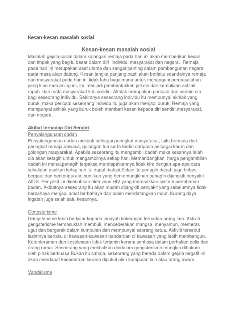 Remaja terbabit juga biasanya tidak sembahyang dan mengingkari perintah agama yang lain. Perkara ini sering berlaku di kalangan remaja remaja sekarang yang hidup di dalam alam penuh dengan kemajuan. Maklumat daripada teknologi ini ada yang negatif dan positif. Karangan pt3 punca punca berlakunya gejala sosial di kalangan remaja sejak akhir akhir ini isu berkaitan gejala sosial saban waktu diuar uarkan dalam media arus perdana di negara kita.