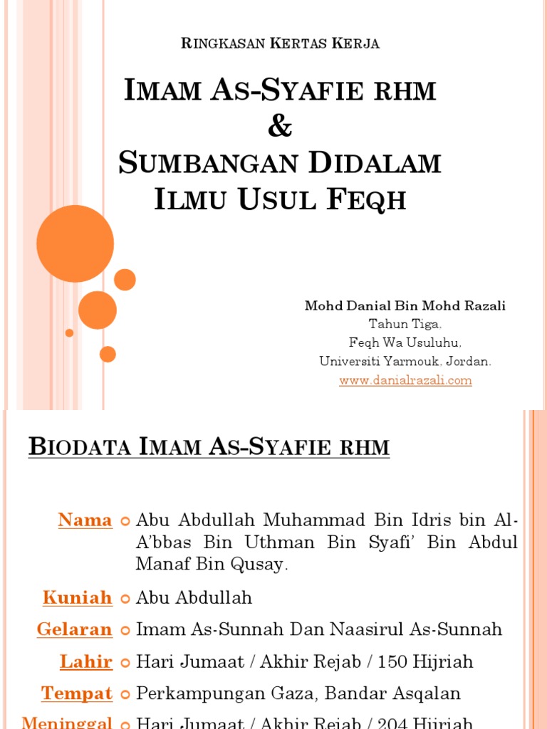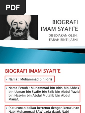 Academia edu is a platform for academics to share research papers. Riwayat hidup imam shafie. Menyelusuri perjalanan hidup dan proses pembelajaran imam syafie amat menarik sekali ayah beliau meninggal sewaktu imam syafie masih kecil ada riwayat yang mengatakan sewaktu beliau masih dalam kandungan ibunya lagi. Imam syafie adalah berasal dari keturunan arab quraisy.