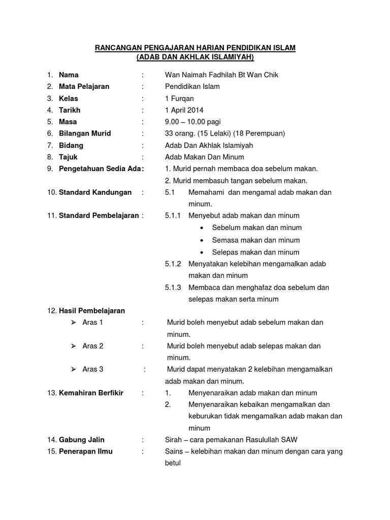 Contoh rancangan pengajaran pendidikan islam pra sekolah. Rph pendidikan islam lengkap setahun ini merupakan himpunan rph dari tahun 1 sehingga tahun 6. Spi bil 3 1999 2. Panduan pdpc pak21 sila fahami konsep yang ditetapkan penulisan rph ini dibincangkan oleh jud kssr pen islam daerah ranau.