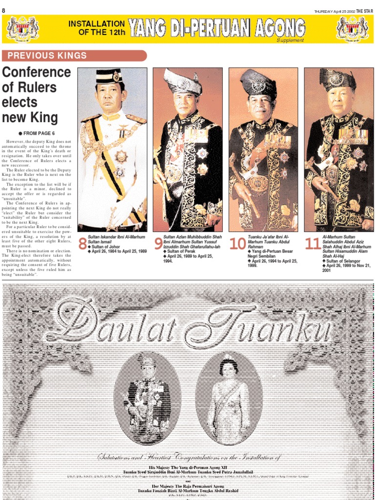 Sultan salahuddin abdul aziz shah al haj. Ia menjabat sebagai yang di pertuan agong dari 26 april 1999 hingga 21 november 2001. Sultan salahuddin abdul aziz shah al haj ibni sultan hisamuddin alam shah al haj was the eleventh yang di pertuan agong of malaysia and eighth sultan of selangor. Sultan salahuddin abdul aziz shah al haj ibni almarhum sultan hisamuddin alam shah al haj 8 march 1926 21 november 2001 jawi. On the demise of his father sultan hisamuddin alam shah al haj ibni almarhum sultan alaeddin sulaiman shah tengku abdul aziz shah became the eighth sultan of selangor with the title sultan salahuddin abdul aziz shah on 3 september 1960 and was installed as the 28th sultan on 28 june 1961.
