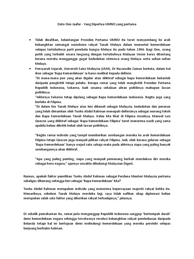 Sumbangan tunku abdul rahman kepada negara secara ringkas. Tunku abdul rahman putra al haj ibni almarhum sultan abdul hamid halim shah 8 februari 1903 6 disember 1990 merupakan ketua menteri persekutuan tanah melayu dari 1955 dan perdana menteri pertama sejak kemerdekaan pada tahun 1957 sehingga 1970. Pengenalan malaysia merupakan sebuah negara yang pada awalnya kurang membangun dan sangat bergantung kepada pertanian tradisional kini boleh dianggap sebagai sebuah negara makmur dengan ekonomi pelbagai. Menurut tunku pendidikanlah yang akan membantu mengubah nasib seseorang dan juga menjadi penentu perkembangan sesebuah negara. Tunku abdul rahman putra al haj diputerakan pada 8 februari 1903 di alor star kedah.