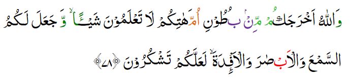 Dan allah mengeluarkan kamu dari perut ibumu dalam keadaan tidak mengetahui sesuatupun dan dia memberi kamu pendengaran penglihatan dan hati agar kamu bersyukur. Arti perkata dan mp3 surat annahl ayat 78. Disamping itu juga dilengkapi dengan mp3 pada ayat tersebut sehingga sobat bisa langsung mengetahui bagaimana cara membacanya dengan langsung. Lafaz ayat al qur an surat an nahl ayat 78 dan artinya.