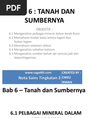 Tanah dan sumbernya. Semula jadi bukan organik berkeadaan pepejal komposisi kimia yang tetap zarah zarah disusun dalam corak tertentu 4. Tanah dan sumbernya posted by lemon zest at 9 42 am. Berikut adalah tajuk tajuk bagi matapelajaran sains tingkatan 3 mengikut sukatan kbsm.
