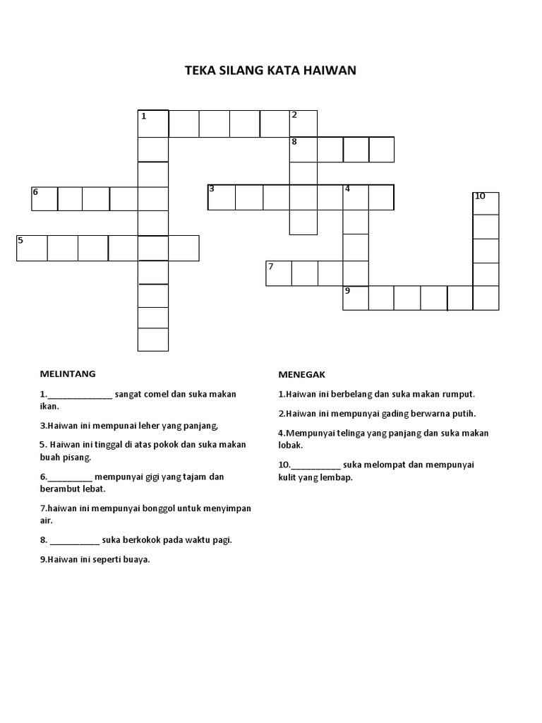 Teka silang kata haiwan. Pada hari ini kami ingin beritahu bahawa saya telah kongsikan satu post yang sangat bermanfaat untuk ibubapa cetak iaitu himpunan teka silang kata haiwan yang sangat bermanfaat untuk murid perolehi. Untuk pemberitahuan post di atas iaitu himpunan teka silang kata haiwan yang sangat bermanfaat untuk murid perolehi di tulis oleh admin pada 2019 10 17 15 08 17. Untuk pengetahuan anda ini hanya sedikit sahaja dan ada lebih banyak fail yang adminakan kongsikan dibawah ini. Masa ini kami ingin war warkan bahawa pihak kami telah menulis satu artikel yang sangat berguna untuk murid murid print iaitu himpunan teka silang kata nama haiwan yang sangat terhebat untuk para ibubapa perolehi.