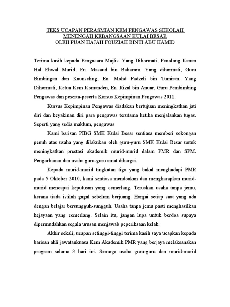 2015 7 october 3 oct 28 3 may 3 may 21 1. Jawa 2 tuan hj. Majlis penyampaian watikah pelantikan kepimpinan pelajar tahun 2015 bil pengacara skrip 1 wan mengumumkan ketibaan yang dihormati inspektor nor zedy bin mohd nor pegawai perhubungan sekolah menengah ipd kemaman. Saya sangat berharap agar program program kepimpinan seperti ini akan terus berlangsung dan disebarluas untuk semua pelajar.